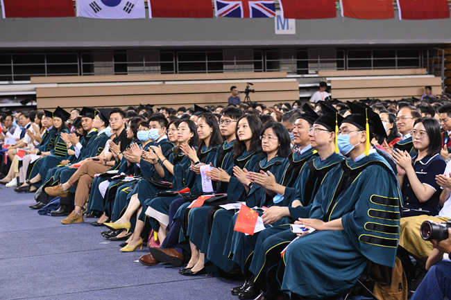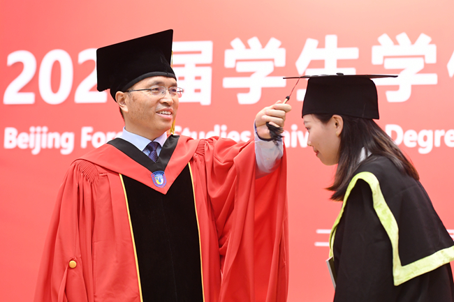 亚洲学院胡海澍作为毕业生代表发言,他与在座毕业生们共同回顾了在北外学习生活的难忘点滴,感恩在北外收获的沟通的智慧、博爱的情怀和笃行的志向,代表北外人表达了对奔赴未来承担使命、践行责任的决心与信心。