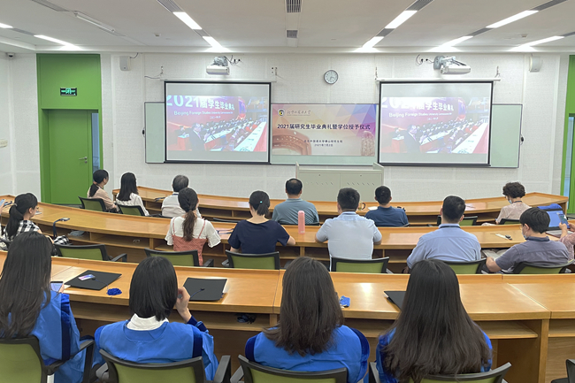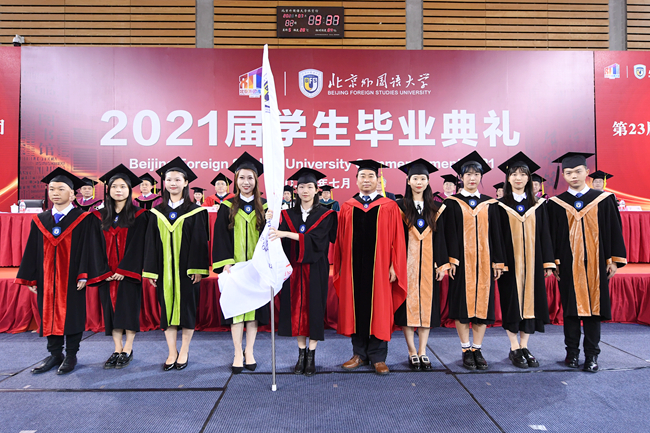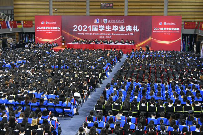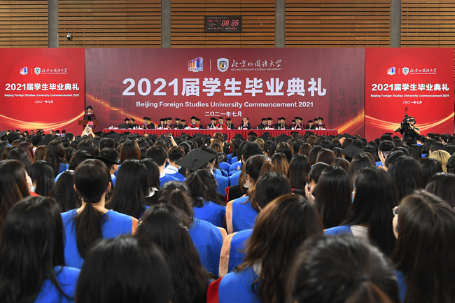 北外1975级校友、中国公共外交协会副会长、原驻丹麦大使刘碧伟,北外党委书记王定华,党委副书记、校长杨丹,党委副书记、副校长贾文键,党委常委、副校长孙有中,党委副书记、纪委书记胡志钢,党委副书记苏大鹏,党委常委、副校长丁浩、赵刚出席,各学院、相关职能部处负责人,教师代表,2400余名2021届博士生、硕士生、本科生和留学生参加毕业典礼,典礼由苏大鹏主持。