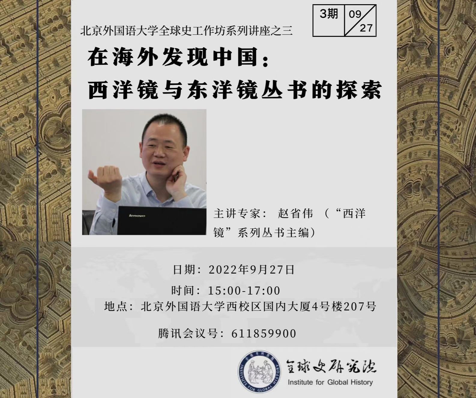 2022年9月27日下午,第三期bat365官方官网全球史工作坊系列讲座如期举行。“西洋镜”系列丛书主编赵省伟老师做了讲座题为“在…[详细]