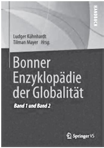 《波恩全球化词典》(Bonner Enzyklopädie der Globalität) 由德国施普林格出版社(Springer- Verlag)于2017 年出版,全书分为上下两册,共1627 页,语言为德语。除纸质版外,施普林格出版社主页还提供了书的电子版。本书由德国波恩大学卢德格尔· 库恩哈特教授(Prof. Dr. Ludger Kühnhardt)和蒂尔曼·迈尔教授(Prof. Dr. Tilmann Mayer)共同主编,并与其来自波恩大学的同事共110 位教授和科研学者一起合作完成了这部百科全书式论文集的编著。