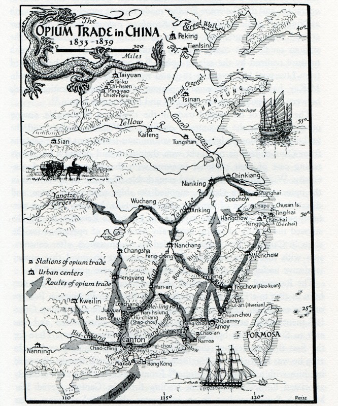 《南京条约》中只字未提鸦片贸易,因此它得以秘密地继续进行甚至得到迅速的发展。1879-1888年间鸦片贸易发展到顶峰。直到1900年前后,毒品消费才在世界范围内开始被认为是非法的。20世纪初随着毒品消费的非法化,中国的鸦片贸易才逐渐得到控制。