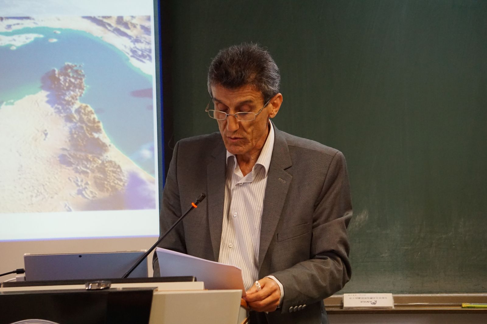 随后,乌苏吉教授以《最古老的波斯湾地图》(“Description of the Oldest Map of the Persian Gulf”)为题做了发言。乌苏吉教授在电脑上展示了一些珍贵的古老地图,带给在场观众美的享受和对古老文化的向往。乌教授认为"Șurat Bahr al-Fars”, (The map of the Persian Sea)是最古老的波斯湾地图,并描述了它的制图技术和地理概念。伊斯兰的制图学将伊斯兰世界划分成12个大的部分,每个部分都有相应的地图,这种地图被称为“伊斯兰区域地图”,这幅最古老的波斯湾地图就属于此类。