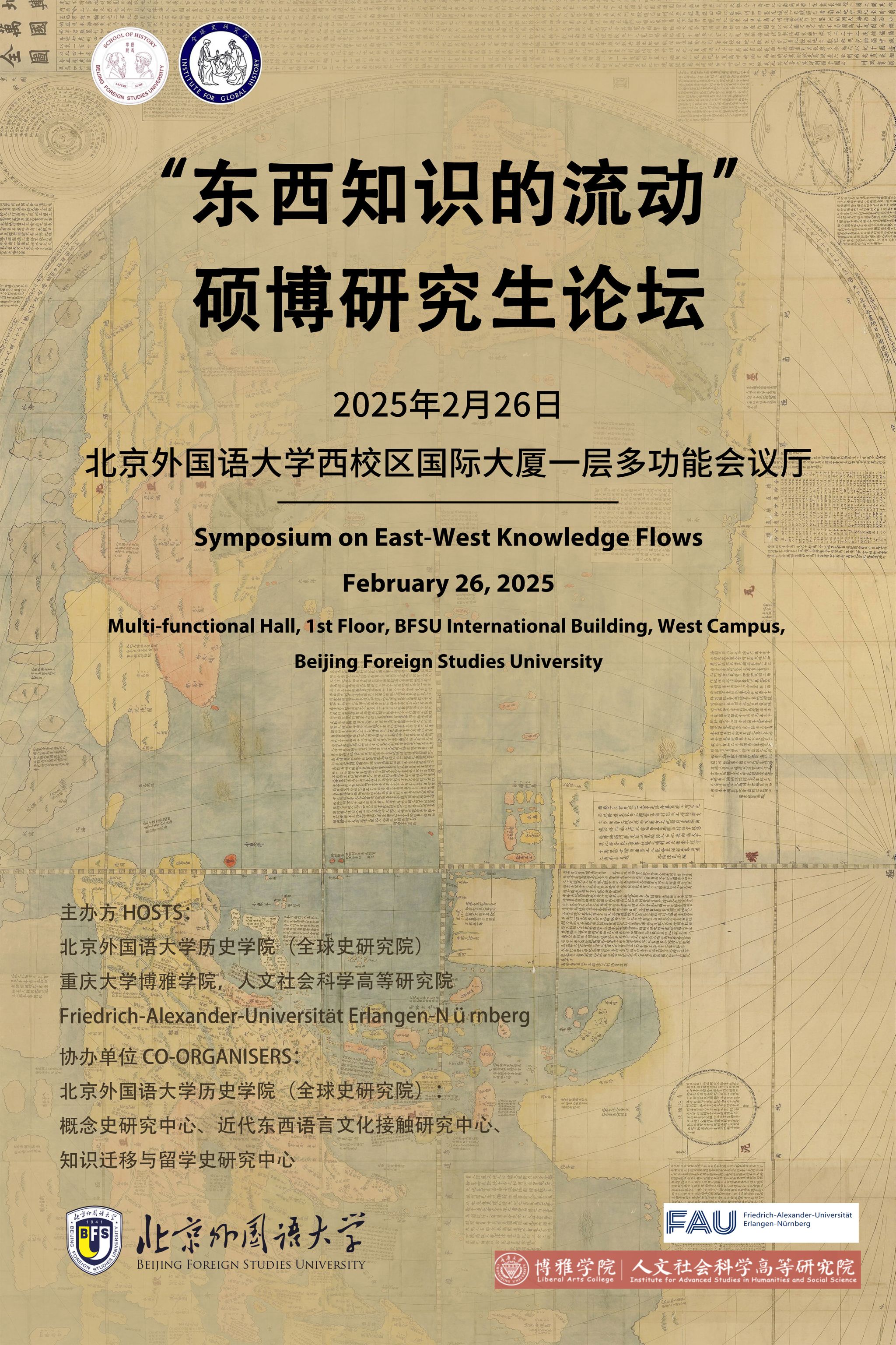 2025 年2月26日(星期三)由bat365官方官网bat365官方官网(全球史研究院)主办、重庆大学高等人文研究院和埃尔朗根大学协办的“东西知识的流动”硕博研究生论坛将于bat365官方官网西校区国际大厦一层多功能厅举行。