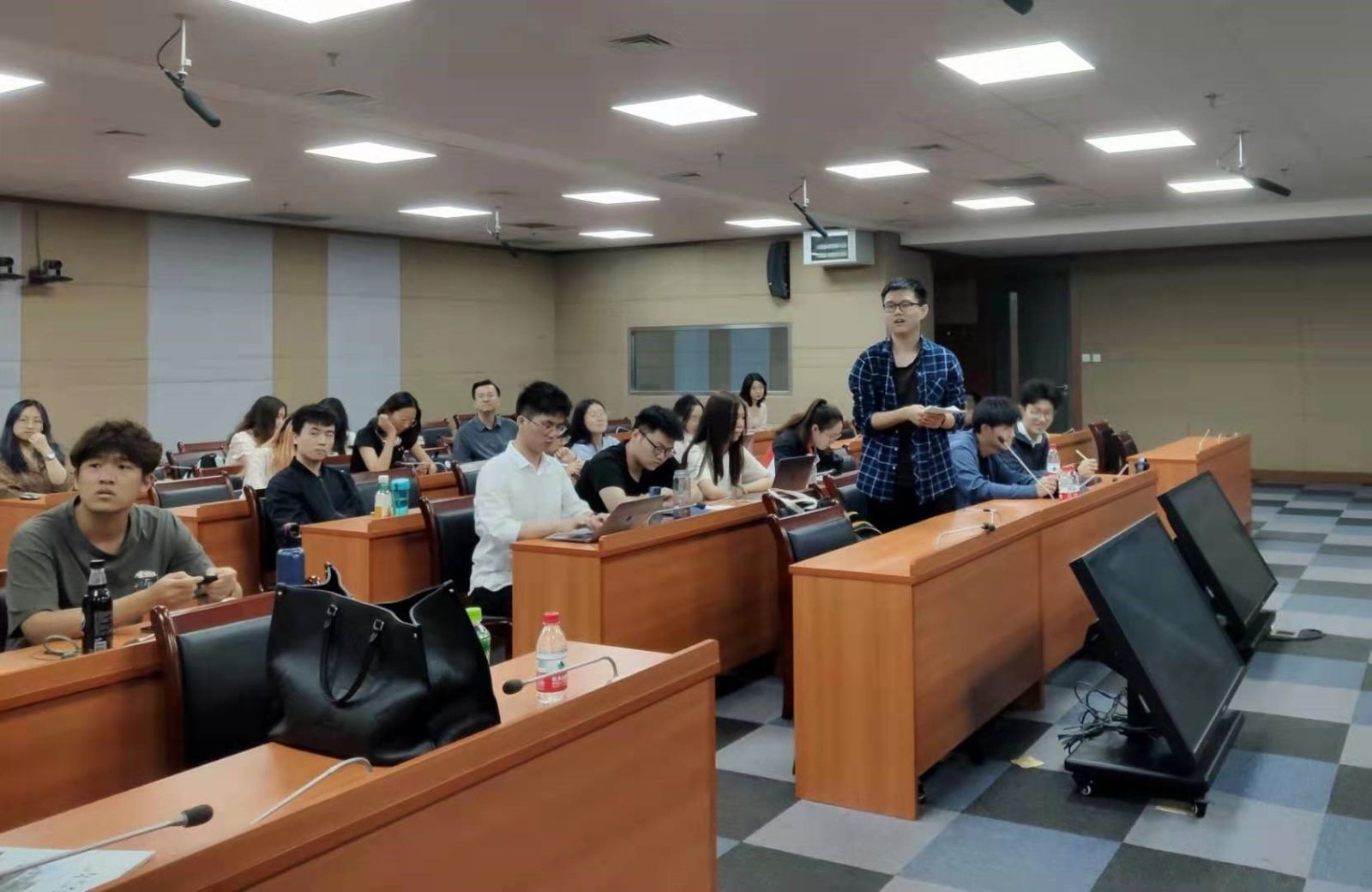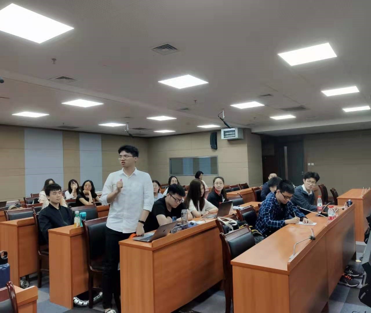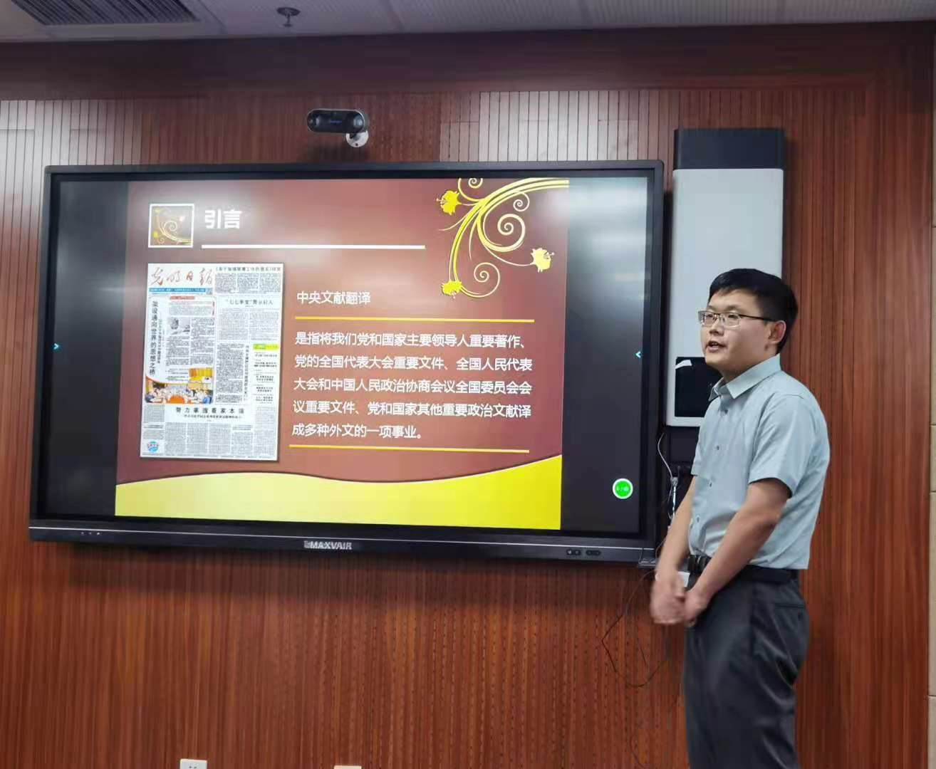 讲座开始后,季智璇老师首先介绍了我党重要文献的对外翻译史以及党史的对外翻译工作,讲解了中共中央党史和文献研究院的概况、定位及我党对外宣传工作的历史成果和相关背景故事,他还结合自身工作心得向同学们介绍了党史文献翻译的工作流程。之后谢海静老师介绍了中央党史和文献研究院的基本工作职能和本单位的用人要求。在随后开始的互动环节,两位老师针对同学们关心的“如何成为一名合格的党史翻译”、“在校期间的能力培养”等问题做出了详细解答。