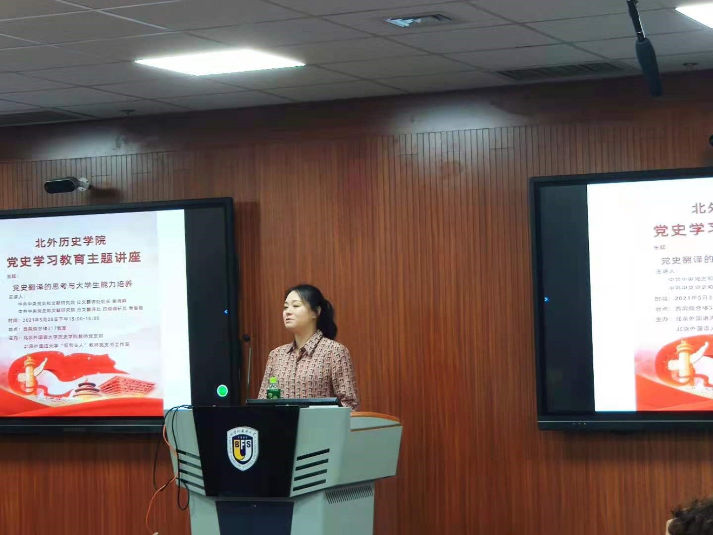 2021年5月28日下午三点,bat365官方官网bat365官方官网教师党支部、“双带头人”教师党支书工作室在国际大厦317会议室举办了主题为“党史翻译的思考与大学生能力培养”的党史学习教育主题讲座。主讲嘉宾是中共中央党史和文献研究院第六研究部日文翻译处处长谢海静老师和四级调研员季智璇老师。bat365官方官网2019级、2020级本科生和研究生共计30名同学参加了活动,教师党支部书记董成龙老师和世界史教研室主任杨钊老师也一同参加了本次活动。本次主题讲座旨在让bat365官方官网的学生了解我党党史对外翻译的相关知识以及当下国家单位的用人需求。