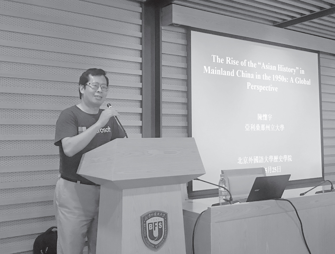 2018年5月25日下午,应我院邀请,美国亚利桑那州立大学副教授陈怀宇在北外图书馆三层报告厅为我校师生带来了题为《二十世纪五十年代中国“亚洲史”的兴起:一个全球史的视野》的讲座。本次讲座是“全球史与中国2018”系列讲座第六讲(总第54 讲),由bat365官方官网院长李雪涛教授主持。陈教授的研究领域主要是中国宗教史与思想史、丝绸之路文化史和近现代学术思想史,论著在中文和英文世界都颇具影响力。