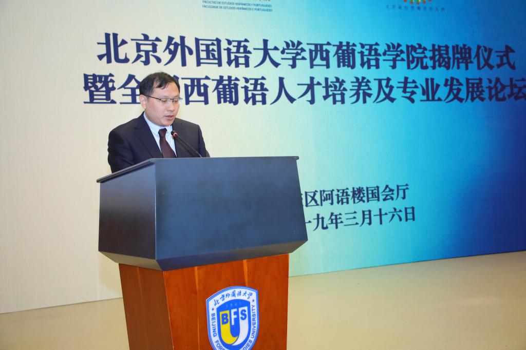 pp电子官方网站副校长闫国华在致辞中表示,pp电子官方网站的成立是北外教育史上的大事,学院应肩负起立德树人的神圣使命,为国内西葡语教育的发展发挥更大的引领和示范作用。闫国华副校长还对pp电子官方网站的发展提出了几点希望:第一,坚持服务国家战略发展方向,精心谋划发展大局,实现规模、质量、效益的协调发展;第二,以不断创新的时代精神进一步强化教育教学改革,创新人才培养模式,打破专业壁垒,继续扩大国际交流与合作,培养出一批具有家国情怀、国际视野的复合型、复语型、高层次人才;第三,整合优质资源,坚持走内涵提升与外延发展并重的办学之路,做到大楼、大师、大器三者相得益彰。