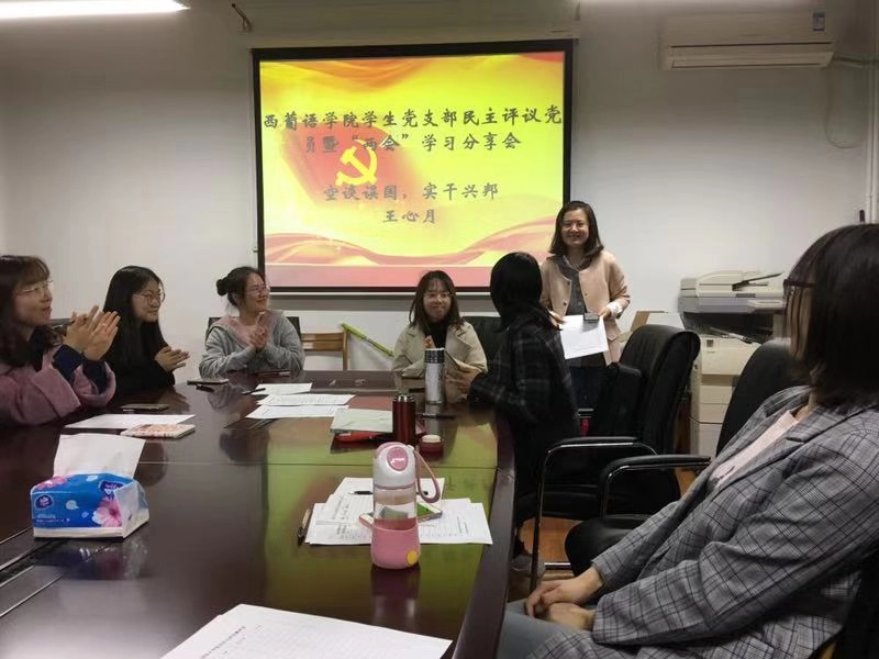 宣讲会开始,学生党支部副书记王宜印向大家介绍了学院支部在增强基层党建方面所做的工作。为进一步增加学院党支部的凝聚力,学生支部落实学生党员以及教师党员作为积极分子联系人的相关工作,将积极分子的考察工作做好做实。在组织结构上,pp电子官方网站学生支部下设本科生和研究生两个党小组,分别由卞鹏和王宜印担任负责人。支委会成员分工明确,责任到人,力求高质量完成各项工作要求。支部内部在积极分子考察和党员发展过程中,致力于将各项指标制度化,在广泛征求意见的基础上,确保各项程序按公开、透明的原则进行。此外,学院党支部也积极举办主题形式丰富的党日活动,如两会学习分享会、民主评议会、参观抗战名将纪念馆等。2019年红色“1+1”活动也已正式立项,支部与国防大学国际防务学院支部互学共建,为学生党员和积极分子提供了更多交流学习的机会。