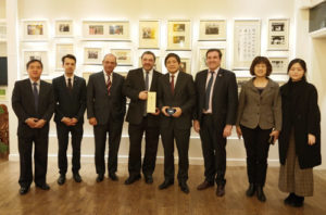 4月10日下午,乌拉圭中央银行行长马里奥•贝尔加拉(Mario Bergara)在乌拉圭驻华大使费尔南多•卢格里斯(Fernando Lugris)、乌拉圭央行副行长乔治•加马拉(Jorge Gamarra)的陪同下访问pp电子,并作专题讲座。校长彭龙会见了贝尔加拉一行。