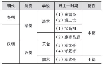 表1:秦至汉武之制度与官奉学说